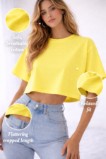 Crafted from soft, breathable cotton, this tee feels smooth on the skin and keeps you comfortable all day long. The relaxed fit drapes naturally, while the cropped length enhances your silhouette, making it ideal to pair with high-waist jeans, trousers, or skirts.