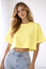 Refresh your everyday style with this elegant Lime Yellow Cropped T-Shirt, designed to blend comfort with a modern, flattering look. The rich forest green shade adds a touch of premium sophistication—perfect for both casual days and styled outfits.