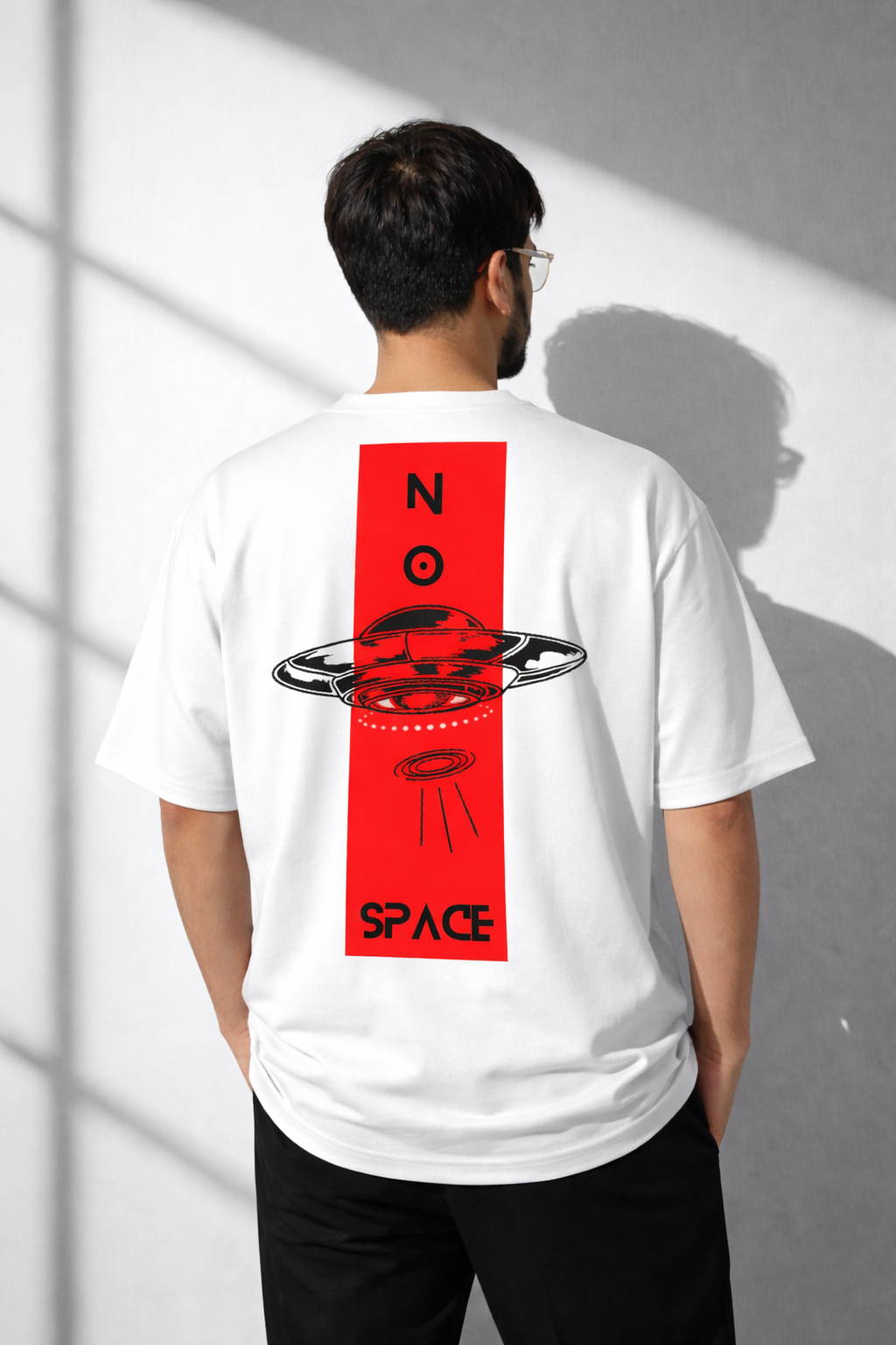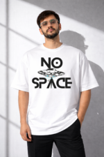 Upgrade your streetwear game with this bold and futuristic NO SPACE Graphic T-Shirt. Designed for those who like to stand out, this tee features a striking UFO-inspired print with the powerful “NO SPACE” typography on a clean white base. The high-contrast black design adds a modern, edgy vibe—perfect for casual outings, urban looks, or everyday wear.