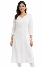 Elevate your everyday ethnic style with this beautifully crafted white chikankari kurta. Designed with intricate embroidery on the front, this kurta blends traditional artistry with modern comfort. Made from soft, breathable fabric, it ensures all-day ease while keeping your look effortlessly graceful.